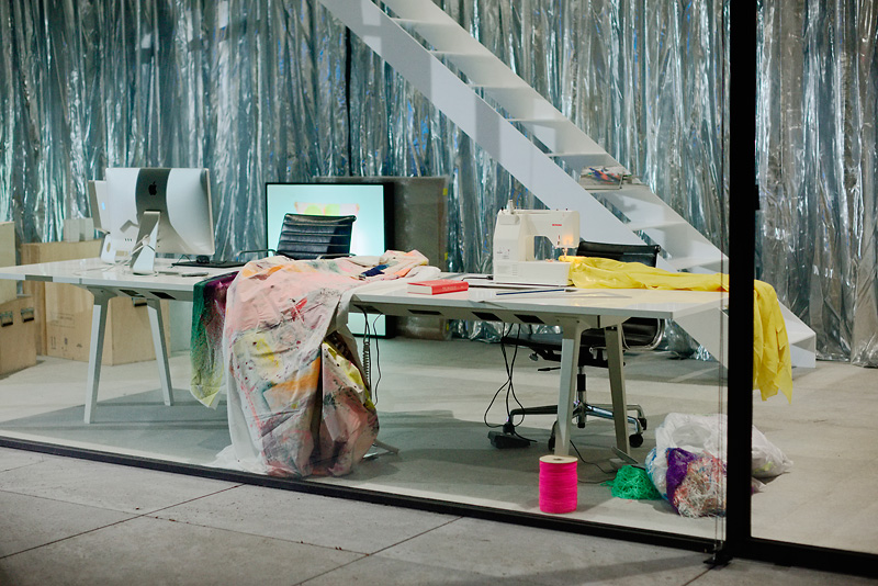 Once there is a clear vision of the work, first prototypes, various fabric and material samples, prints for color proof and handicraft pattens are produced. Throughout the process of realising the edition, LRRH_ offers their expertise in textile manufacture and experience in translating art onto textile.