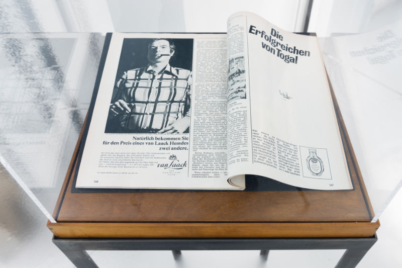 The immaterial shirts from Musée des Chemises materialize in the CUBE of LRRH_AERIAL as Chemise en scène. The dissolution of the boundaries between artworks, everyday objects and the world of goods is another playful reference to Broodthaers: The fabric pattern of the Unisex-edition by Alexandra Hopf refers directly to a shirt that Marcel Broodthaers wore in a 1971 Spiegel advertisement for van Laack. Blatantly ambigious and with ironic recourse – very Broodthaers brand – Alexandra Hopf creates a wearable manifesto for questioning pictures in principle: Ceci n´est pas un Broodthaers!