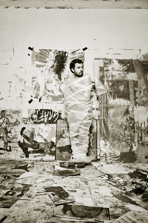 Anton Unai was born in London in 1974 to Catalan parents and initially studied acting and anthopology before graduating in politics and journalism. He lived in numerous countires before coming to Berlin where he is currently working as an artist. Unai finds the inspiration and materials for his work in daily life and urban environments. Materials include refuse and discarded items such as metal plates, old newspapers and recycling material. Unai does not limit himself to one medium in particular but expresses himself through both painting and performance, as well as installation art and silhouettes. Pop and subculture are mixed with religious icons, the artist’s own emotions and literary or artistic references, and reflect a vulnerable and sentimental form of humanity through powerful gestures.