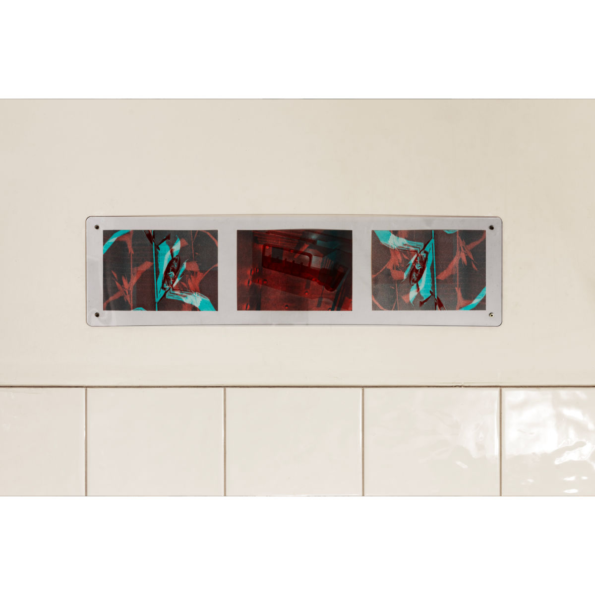 Two channel video installation 1920 x 1080 HD, plexiglas, 4 printed pieces chiffon