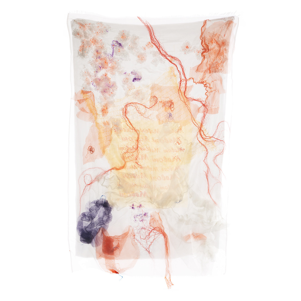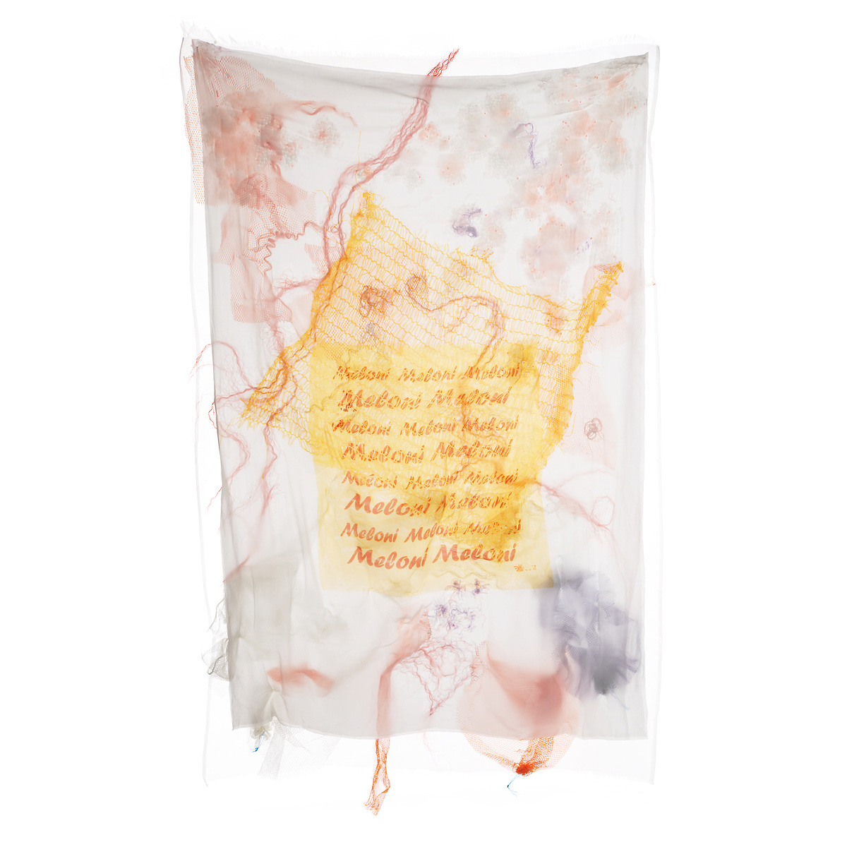 digital printed, hand embroidered & filled-quilted silk tapestry