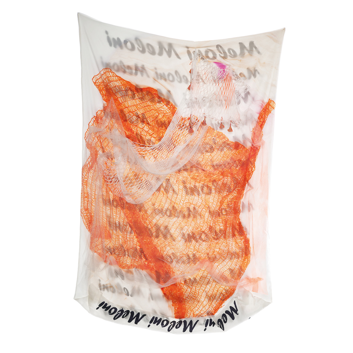 Digital & screen printed, hand embroidered & net-quilted silk layered tapestry