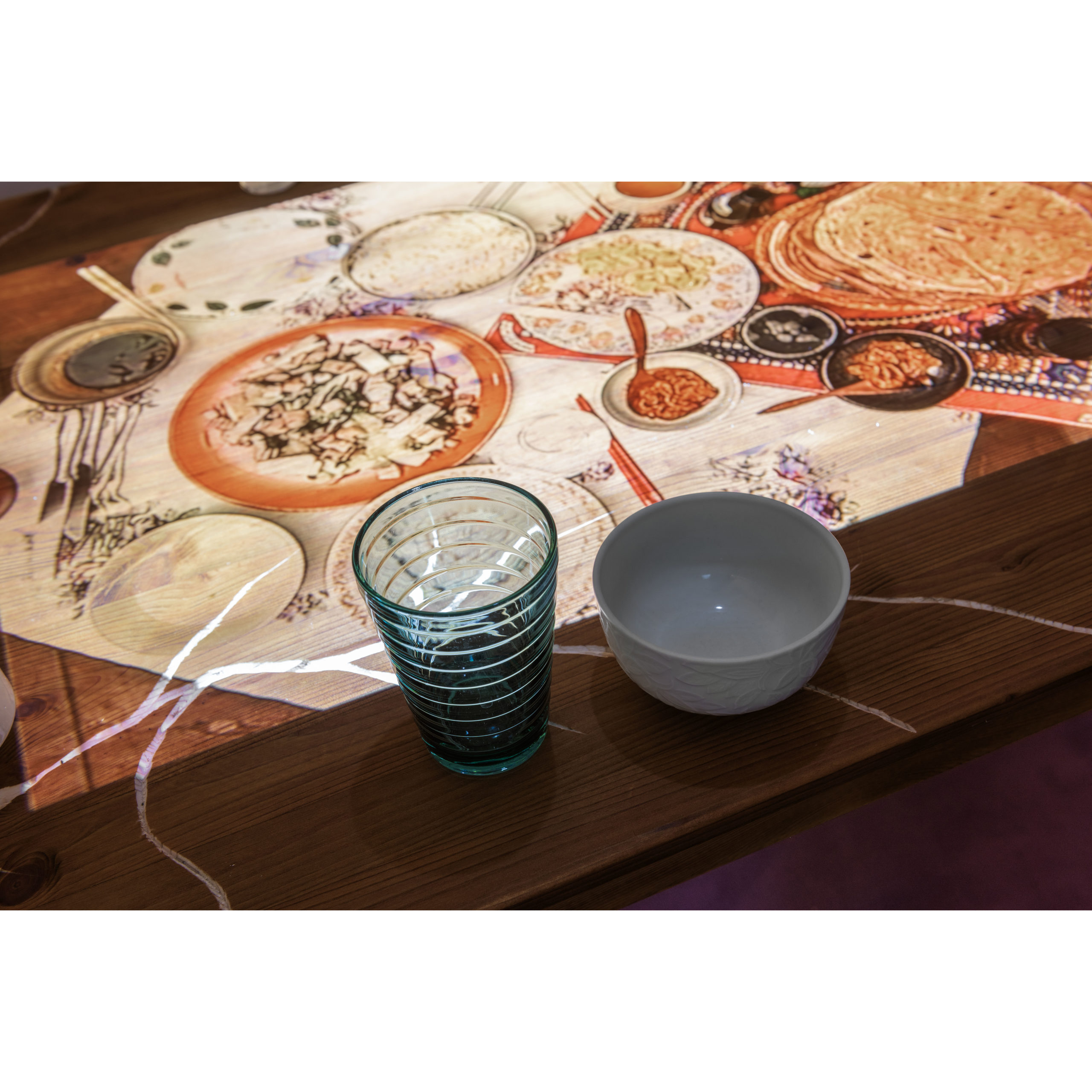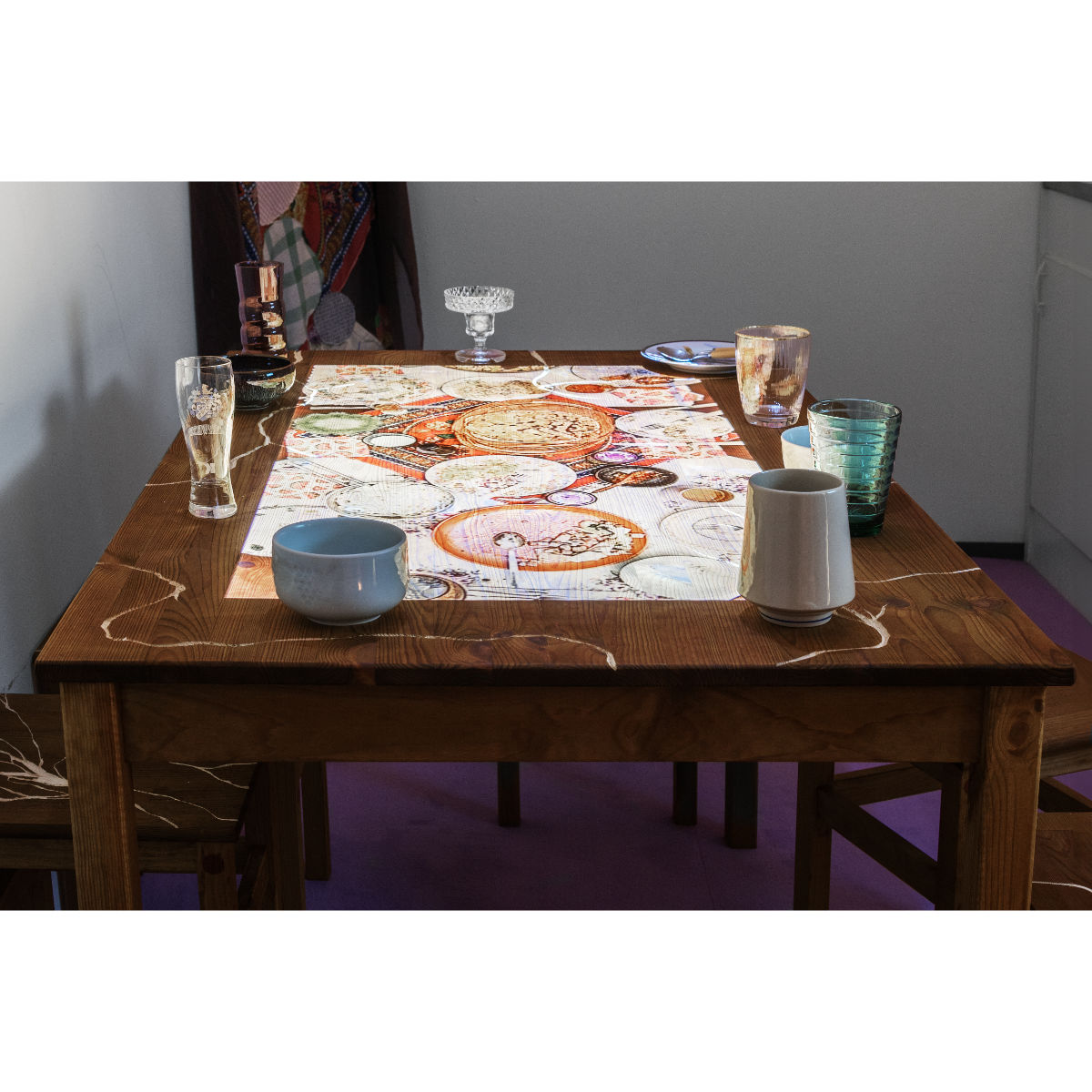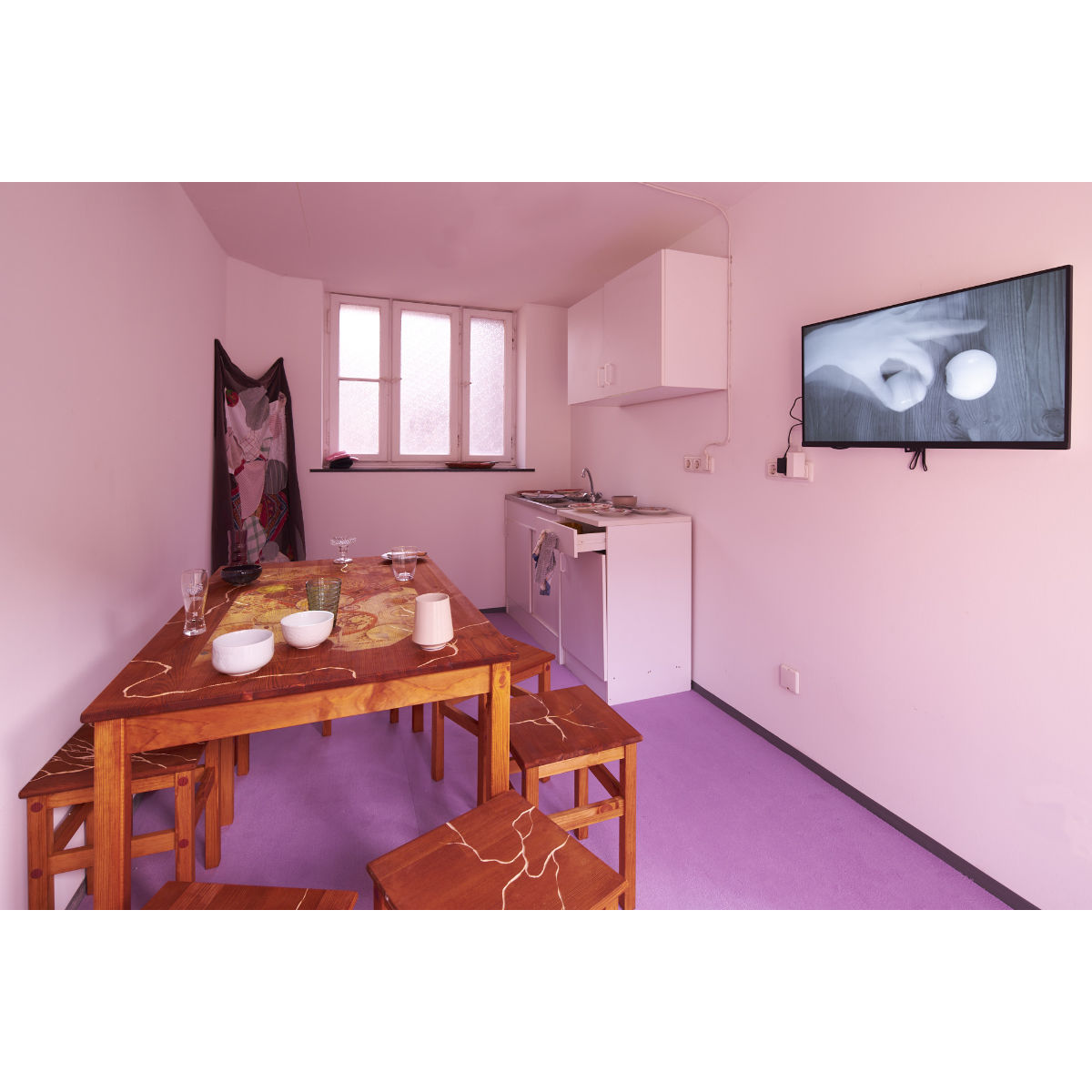 Belgian linen, expanded clay and biodegradable polystyrene, metal chain, wool